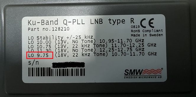 > SMW PLL LNB 9.75 GHz +/- 10 kHz