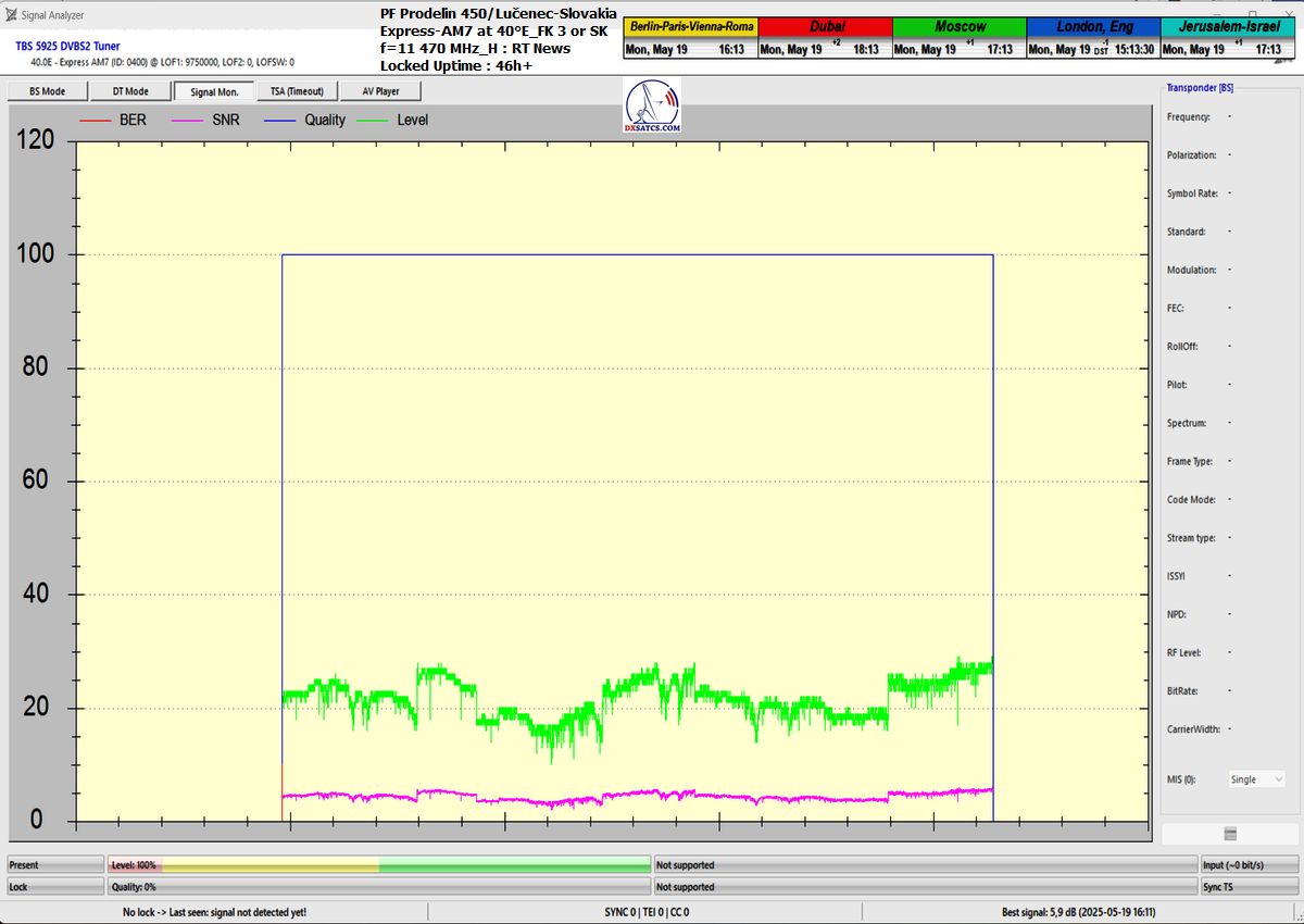 ►►Express-AM7 at 40°E: Continuous signal monitoring / Nepretržitý signálny monitoring