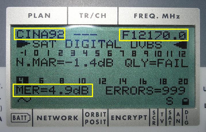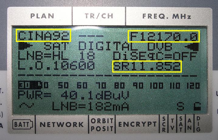 19th September 2009 I am at frequency f = 12 170 MHz to define the parameters of the new data transmission and for the