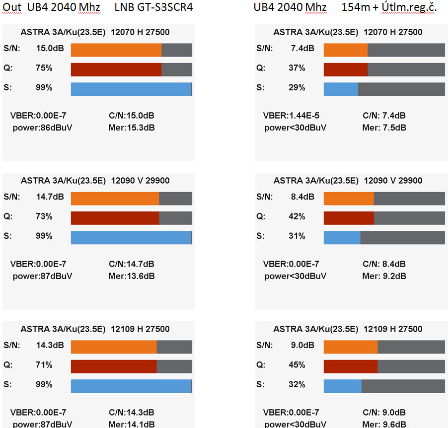 UB1 1210 MHz celková dlžka vedenia 281m         UB2 1420 MHz celková dlžka vedenia 281m