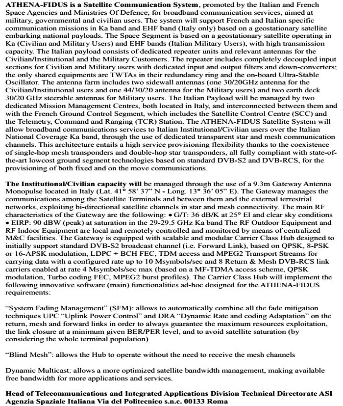 Athena-Fidus-37.8°e : General Description /  source : ASI – Agenzia Spaziale Italiana/Roma