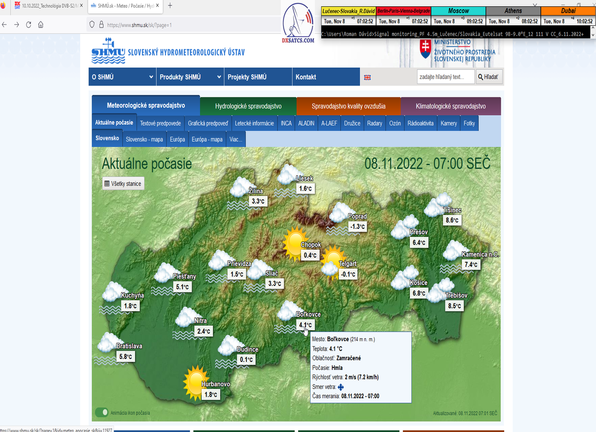 -o 7:00 ráno dňa 7.11.2022 boli publikované prvé dáta o aktuálnych poveternostných podmienkach z shmu.sk : Takmer zamračené 8/8