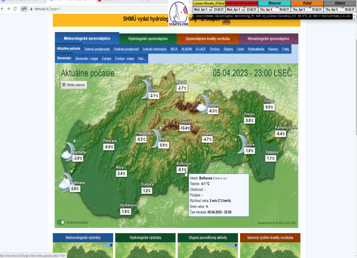 -A- : Začiatok signálneho monitoringu o 6:52 seč a aktuálna poveternostná situácia