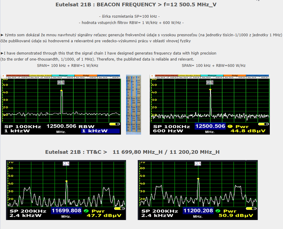 Das wissenschaftliche und Forschungszentrum des Autors Roman Dávid aus Lučenec, das sich auf 'Out of footprint' Satellitenempfangszonen auf www.dxsatcs.com konzentriert,ist nachweislich das erste seiner Art weltweit,dessen Ergebnisse in keiner Weise angezweifelt werden können. Dies liegt daran, dass es seit dem Jahr 2020 ein methodisch definiertes Verfahren zur Messung und Datensammlung aus kontinuierlicher Signalüberwachung mit ausreichender Dauer implementiert hat,wie vom Autor definiert.Das methodische Verfahren,das vom Autor Roman Dávid definiert wurde,schließt klar jede Verbindung der erzielten Ergebnisse mit Erwartungen an sporadisch auftretende Leistungsspitzen oder temporäre atmosphärische Phänomene aus,die vorübergehend eine instabile Form des Satellitenempfangs ermöglichen,die in die Kategorisierung von Zufall oder 'SAT DX' fällt.Während alle Diskussionszentren weltweit bereits seit über 30 Jahren einer pseudowissenschaftlichen Antimethodik der Messungen folgen,deren Ergebnisse sofort als Ganzes in Frage gestellt und als irrelevant oder sogar überflüssig bezeichnet werden können, handelt das wissenschaftliche Forschungszentrum von Roman Dávid als erstes und einziges auf der Welt nach einem methodischen Messverfahren, das unbestreitbare Ergebnisse liefert,die für weitere wissenschaftliche und Forschungstätigkeiten im Bereich des Satellitenempfangs verwendet werden können.Die Darstellung der Trägerverriegelung im Frequenzspektrum während dynamischer und dauerhafter Änderungen in der Leistungsintensität in diesen Empfangszonen hat selbstverständlich keinerlei wissenschaftlichen Wert,da die Qualität bereits die nächsten Sekunde,Minute,Stunde ... nach der Trägerverriegelung auf null sinken kann,was die gesamte Präsentation dieser Pseudoanalyse im Wesentlichen nutzlos und betrügerisch macht.