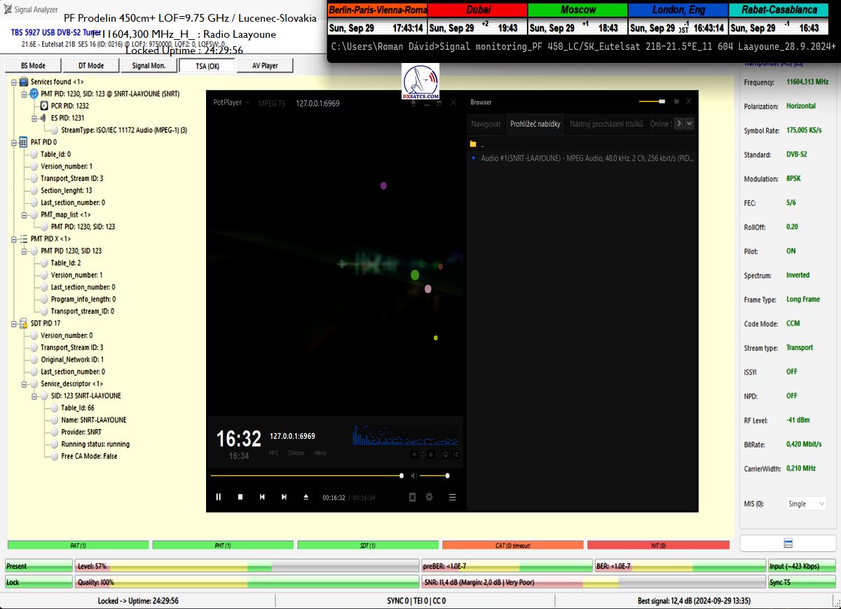 +25 hodín _ Priebežný stav v signálnom monitoringu dňa 30.9.2024 a online video ukážky z vysielania Rádia Laayoune_ TSA OK