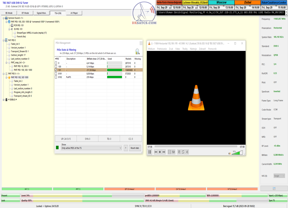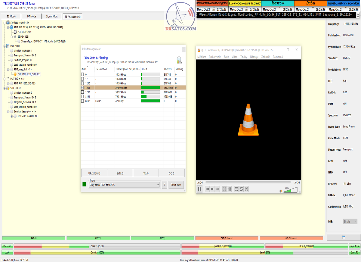 ďažďových prehánok dňa 30.9.2023 pri monitoringu rádio prenosu SNRT Dakhla s SR=175 Ksym/s.Zámerne som kvantitu monitoringu zdvojnásobil