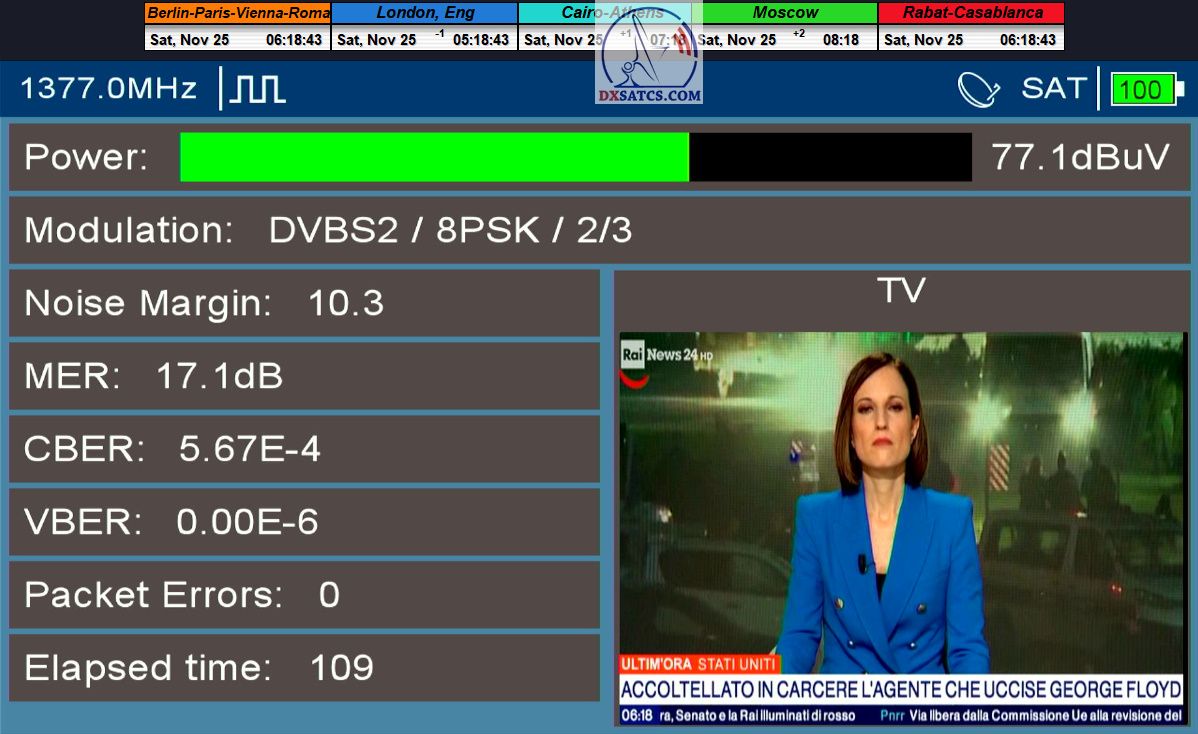 Na príklade dokazovania v podobe signálneho monitoringu paketov Rai a Canal+,vysielaných v technologickom štandarde DVB-S2/Multistream z objektu Eutelsat 5 West B na 5,0°W,Vám dnes dokážem že som účinne a hlavne stabilne transformoval relatívne vysokú intenzitu vyžiareného výkonu EIRP na výslednú kvalitu ,ktorú kvantifikujem pomerom signálu k šumu SNR=20>21+ dB-pri aplikovanej konfigurácii modulačných