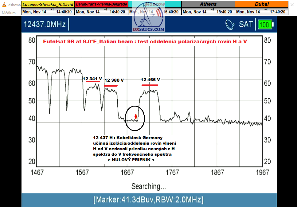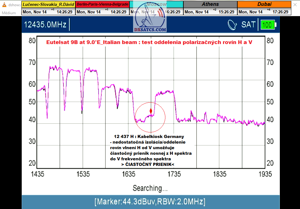 >EUTELSAT 9B at 9.0°E-Italy beam - Germany Ge beam: test presnosti SKEW a účinnosti vzájomnej izolácie/oddelenia rovín
