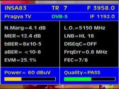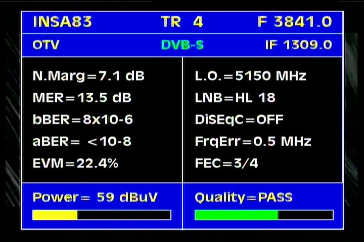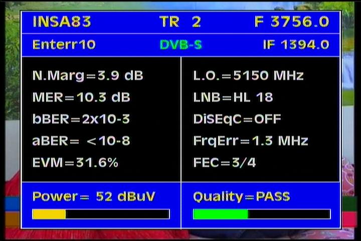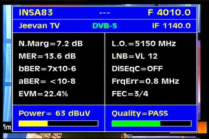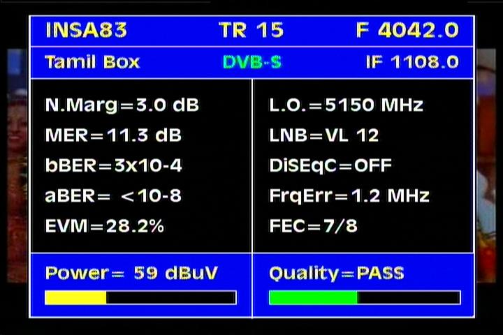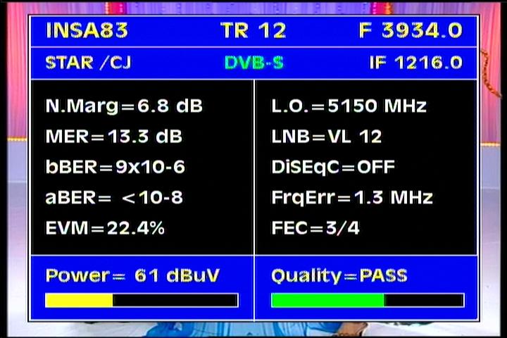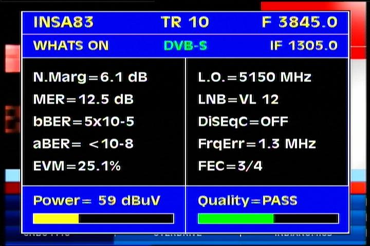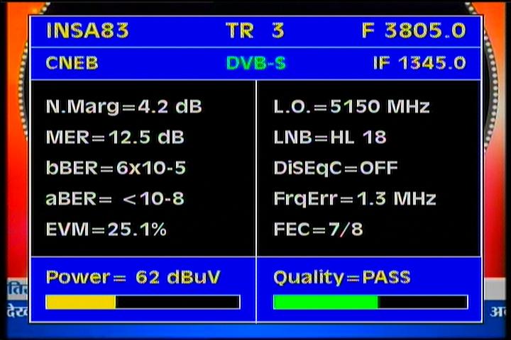 Insat 2E at 83.0°E-wide beam : 3 845 Packet TATA Communications-qualitative peak MER=12.5 dB