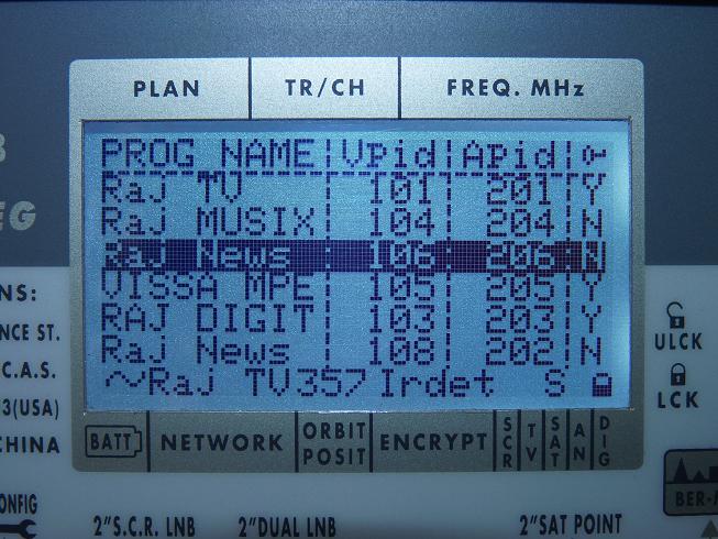TP 10:3 845 V Packet TATA Communic.    TP 3/3 805 H : Packet Essel Shyam               TP 4/3 559 V : Sadhna TV