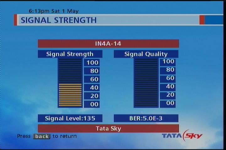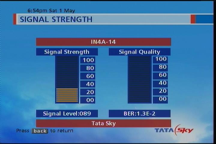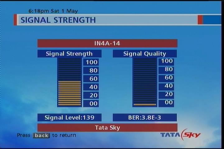 Insat 4A at 83.0°E-footprint in KU band-Packet TATA Sky: relative quality