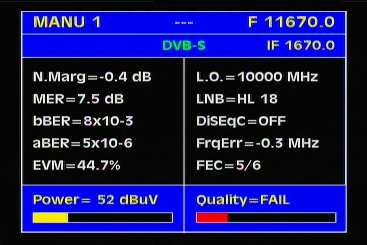 MER=0.5 dB and in field measurements in the length of the 7 hours I did not identify even one pixelation short-falls