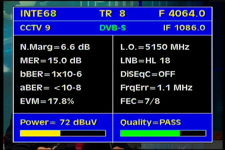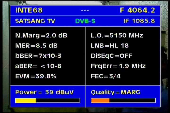 4 064 H-Packet PanamSat > I measured the qualitative status & PF 370 cm : stable level of gain margin of about MER=8 dB