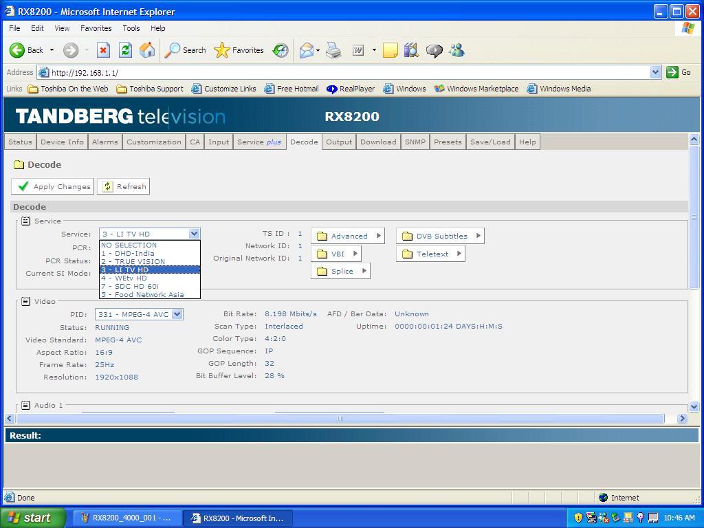 - Second packet : 4 120 H DVB-S2-8PSK-MPEG-4 Unnamed network -
