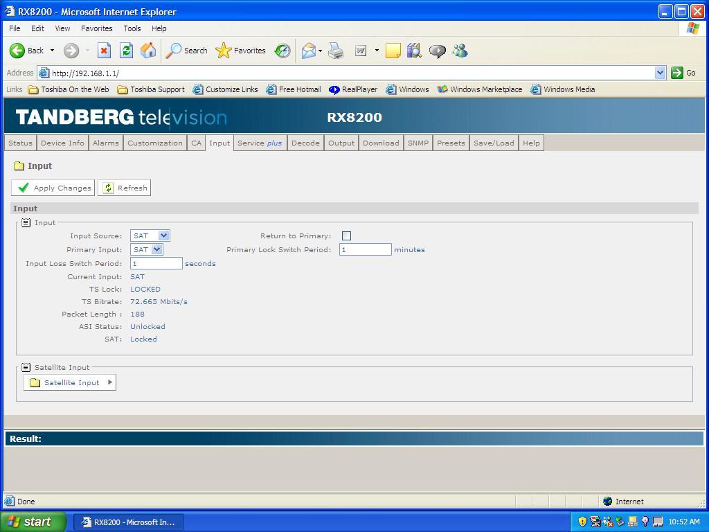 Measat 3A at 91.5°E - Global footprint : Tandberg RX 8200 _ measurement results