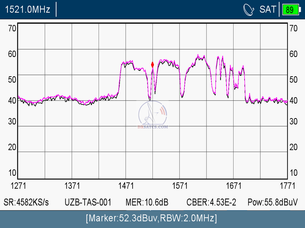 → ako príklad prenosu vo vyžarovacom diagrame "Central Asia" uvádzam práve v spektre aktívny príležitostný FEED kanál UZB-TAS-001 na f=11 521 H