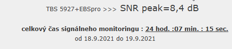 MER=8,6 dB / CBER=6,25E-3_typická a každodenná špička kvality s dostatočnou okamžitou rezervou okolo 2,5 dB nad šumovým prahom