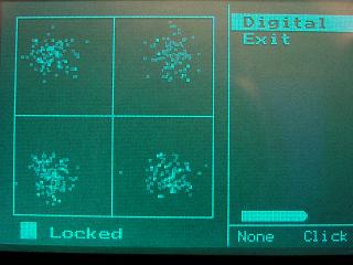 Obrázky č.7, 8, 9 som zaznamenal z meracieho prístroja a fotky zobrazujú základné signálne parametre prenosu. Konštelačný diagram, presnejšie koncentrácia signálnych bodov v priestore nám hovorí o kvalite príjimaného signálu.