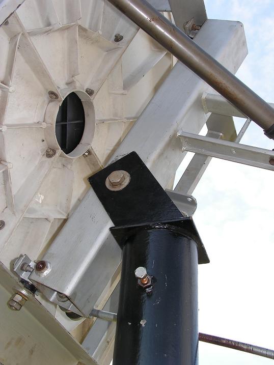 Jedná sa o stredové prevedenie anténneho tvaru v zapojení RX,ktorý je tvorený zo 4 segmentov.Vysoká tvarová stálosť a pevnosť celej reflektorovej plochy,čo prioritne súvisí ako som to vyššie popisoval s najdôležitejším parametrom ,ktorým je dosiahnutý zisk pri vysokej smerovosti, je odvodená od použitého materiálu,ktorým je FIBERGLASS-sklenené vlákno-sklolaminát , ktorý pri vysokej tvarovej stálosti odoláva veľkým tepelným zmenám a tým pádom garantuje stálosť signálnej kvality,vďaka pevnému rebrovaniu z opačnej strany reflektora.Podsatným faktorom pri tomto priemere 300 cm je aj samotná hmotnosť jednotlivých segmentov ,ktorá nepresahuje 25 kg,čo mi podstatným spôsobom uľahčovalo montáž celého reflektora,ktorý dve osoby zvládnu za necelých 60 minút.Podpornú štruktúru nosníka LNB tvoria 4 ks duralových trubiek s dostatočným priemerom ,ktorý dokáže stabilizovať aj kombinované riešenia na spracovanie C/KU pásma s hmotnosť viac ako 5 kg.Originálnou súčasťou celého anténneho kompletu je aj ochranný kryt LNB proti poveternostným vplyvom s medzikruhom pre C pásmový skalárny prstanec,ktorý ako to vidno na obrázku vytvára dokonalý jednoliaty celok,ktorý sa v súčastnej komerčnej praxi vyskytuje len zriedka.Celá poloha ochranného krytu je navyše fixovaná 4.skrutkami.K anténe výrobca dodával originálny polárny záves PLM,ktorý je mimoriadne pevný a jediným zásahom ,ktorý som musel vykonať je prerobenie dĺžky závitovej tyče polárneho uhla resp.elevačného uhla, nakoľko jeho pôvodná poloha neumožňovala zadefinovať NULOVÝ BOD v mieste príjmu,čím je družica Astra 19,2°E.Na zmeny azimutu som nainštaloval bežný tiahlový motor v dĺžke výsuvnej tyče 36 palcov-91 cm,ktorý aj v najkrajnejších azimutálnych polohách v ktorých naň pôsobí najväčší odpor dokázal bez problémou definovať polohu celej zostavy s hmotnosťou okolo 150 kg.Celé fixovanie anténnej zostavy na nosnej rúre s priemerom 114 mm a s dĺžkou 500 cm nad zemským povrchom,je účinne stabilizované rúrou s vnútorným priemerom 130 mm a s dĺžkou 100 cm na ktorej sa nachádza 10 stabilizačných skrutiek M12.Celý T kĺb je fixovaný mohutným šróbom M22. Zložený reflektor antény je fixovaný k polárnemu závesu pomocou štyroch profilov tvaru L z pásoviny s hrúbkou 8 mm.Po zložení celého systému polárneho závesu celok vykazoval vysokú konštrukčnú pevnosť čo mi umožňovalo prejsť k tomu najdôležitejšiemu - zadefinovaniu ohnniskovej vzdialenosti "f" načom stojí celý zisk antény v kombinácii so správnym nastavením PLM.