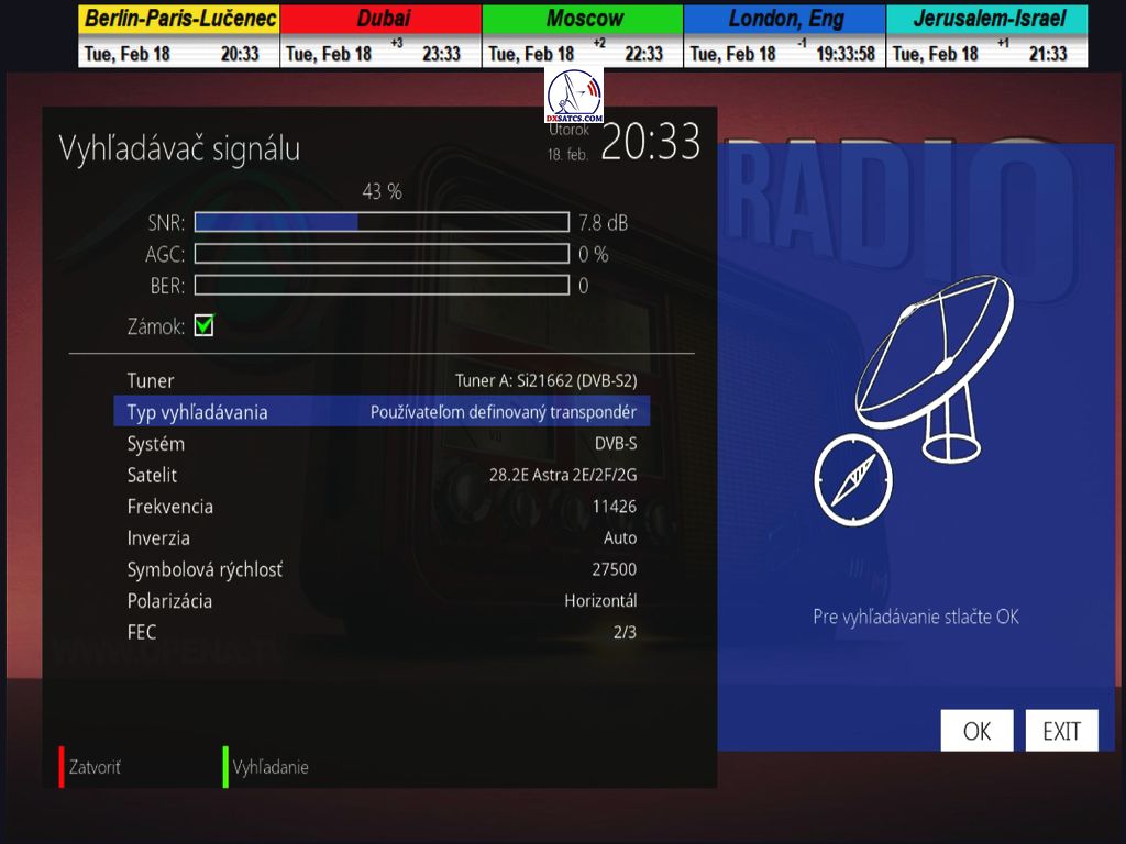 ►DE_Die Ergebnisse der Signalüberwachung über die Zeiteinheiten t=24 und t=72 Stunden verifizieren zweifelsfrei, dass ich eine Empfangsstabilität von 100% ohne einzigen Lock-Verlust oder Stream-Freeze in der Überwachungseinheit t=24 Stunden in der Stadt Lučenec im Süden der Mittelslowakei erreicht habe. In der Überwachungseinheit t=72 Stunden habe ich eine Empfangsstabilität von 99,99% erzielt, wobei von insgesamt über 259.200 überwachten Sekunden Mikro-Freezing des Streams insgesamt nur für zehn Sekunden auftrat. Jedoch gab es während der gesamten t=72-Stunden-Periode keinen einzigen Lock-Verlust, da die Wiederherstellung aus dem Mikro-Freezing in die Lock-Kontinuität in jedem Auftreten und jeder Wiederholung sofort erfolgte. Dies wird zusätzlich durch das Fehlen jeglicher roter Bereiche in den Signalüberwachungsdaten bestätigt, die nachweislich während der gesamten 72 Stunden kein einziges Mal auftraten.