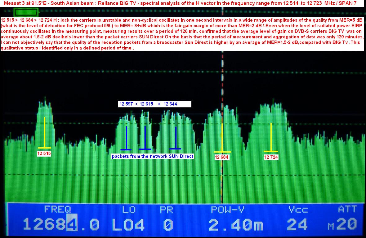 carriers BIG TV was about 1.5-2 dB dB lower than the packet carriers SUN Direct.On the basis that the period of