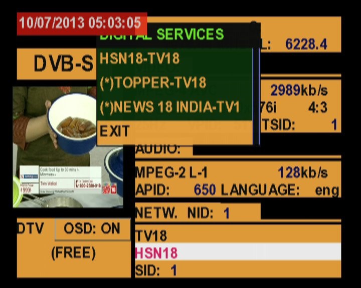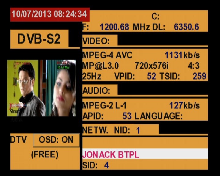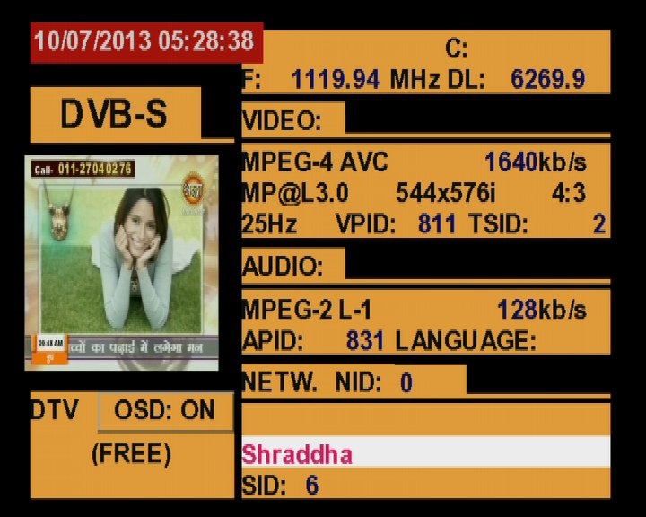 4 087 H @ 1 062.70 MHz @ SPAN 50 MHz : 83°E Live India![]()