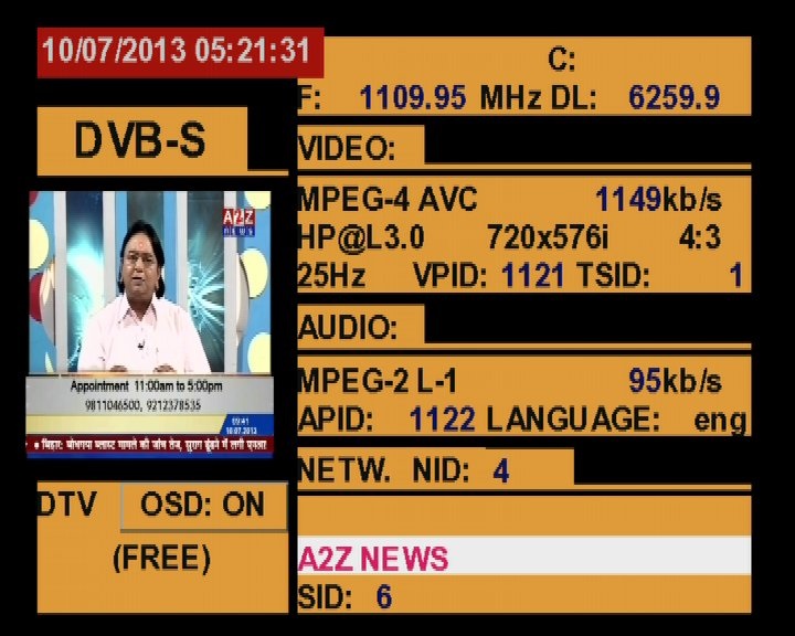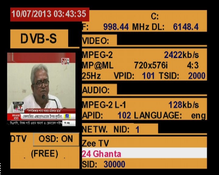 4 115 H @ 1 035.94 MHz @ SPAN 50 MHz : 83°E Manorama news![]()