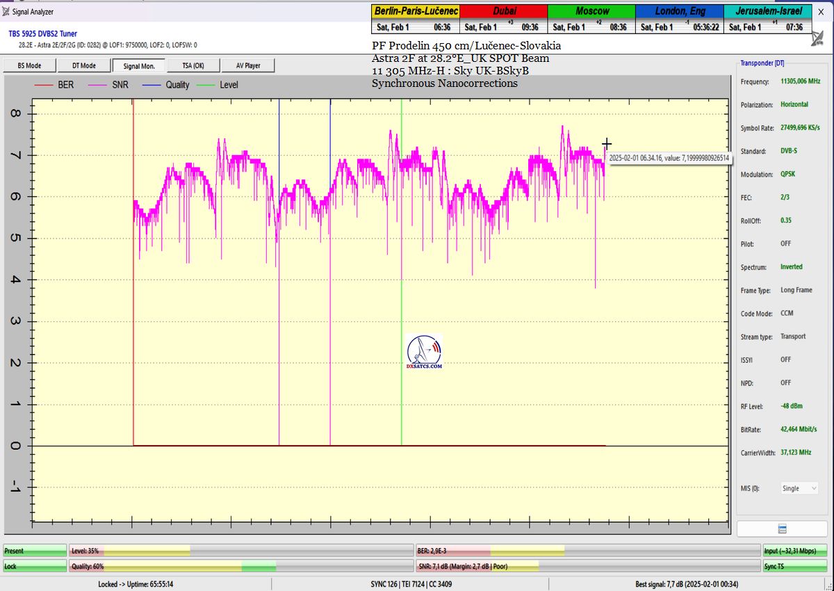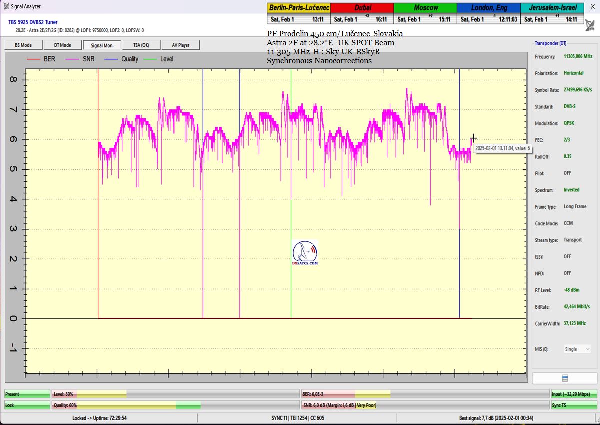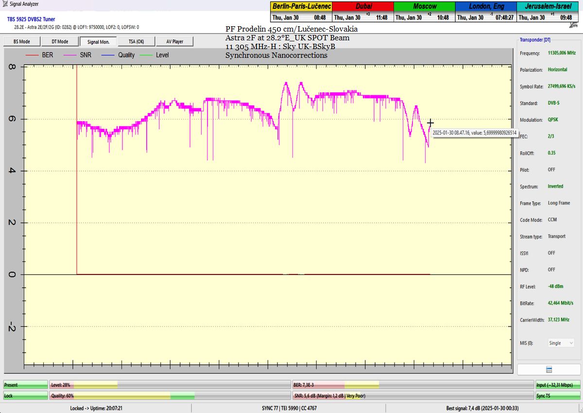 ►EN_Successful application of my technological invention "Synchronous Nano-Corrections" on the 11,305-H carrier of Sky UK-BSkyB and the reception stability verified through signal monitoring over a total duration of 102 hours in the south of central Slovakia.