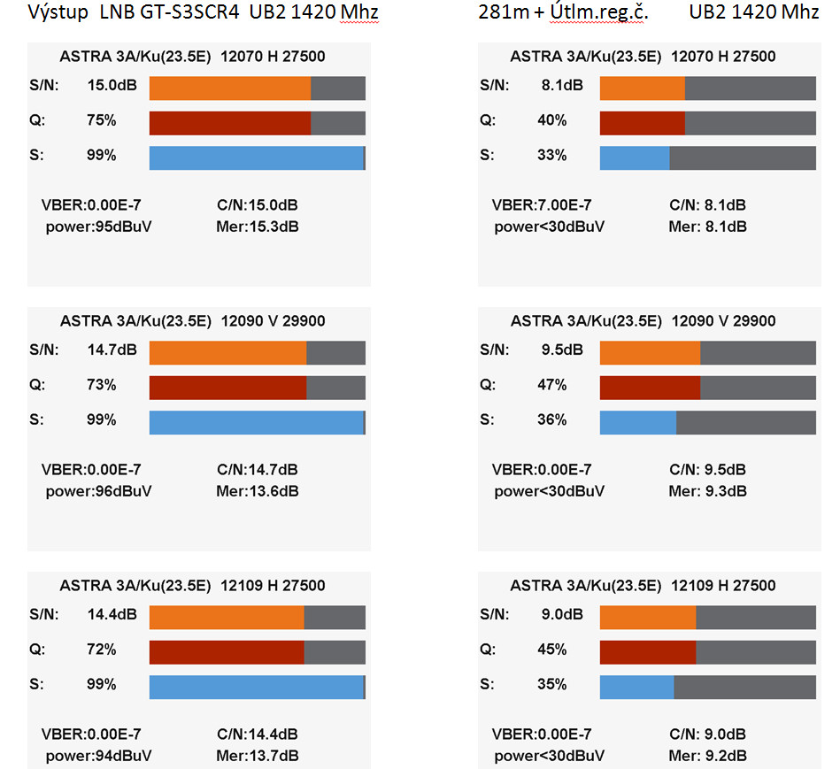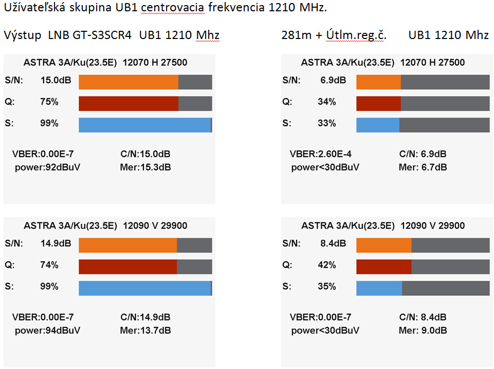 UB1 1210 MHz celková dlžka vedenia 281m         UB2 1420 MHz celková dlžka vedenia 281m