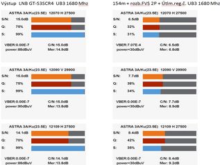 LNB : GT Sat typ GT-S3SCR4 - prevádzkové kanály: 1210,1420,1680,2040 MHz