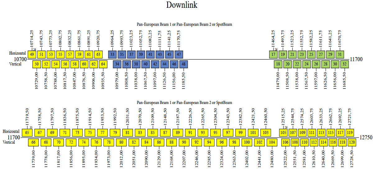 10 700 - 11 700 MHz _linear V+H                     11 700 - 12 500 MHz_linear V+H