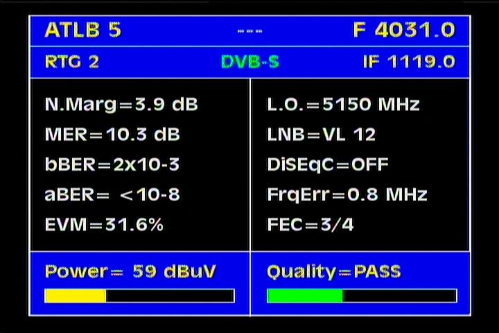 Atlantic Bird 3 at 5.0°W - panatlantic footprint : spectrum analysis & measurement results