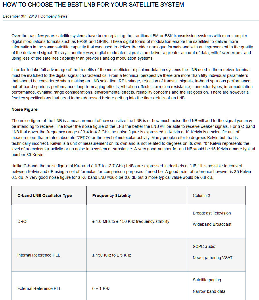 HOW TO CHOOSE THE BEST LNB FOR YOUR SATELLITE SYSTEM by Norsat