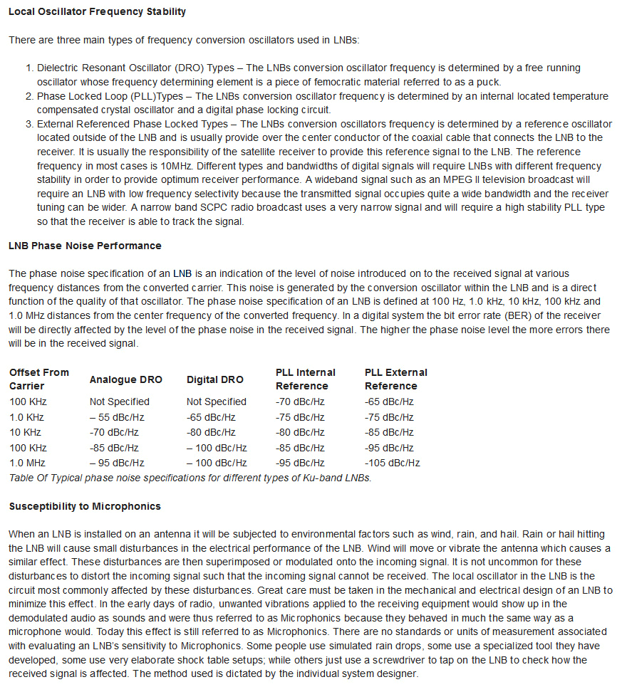 a aplikovanou technológiou stabilizácie frekvencie lokálneho oscilátora v LNB ako je napríklad DRO,PLL atď.