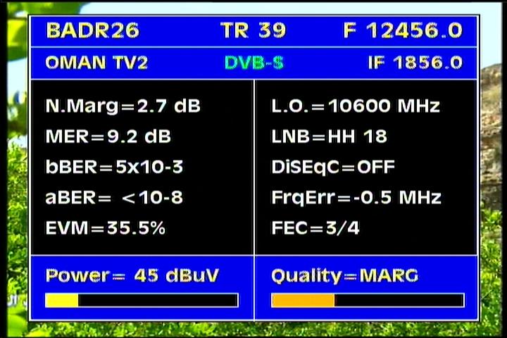 Badr 6 at 26.0°E : percent Q & stream data