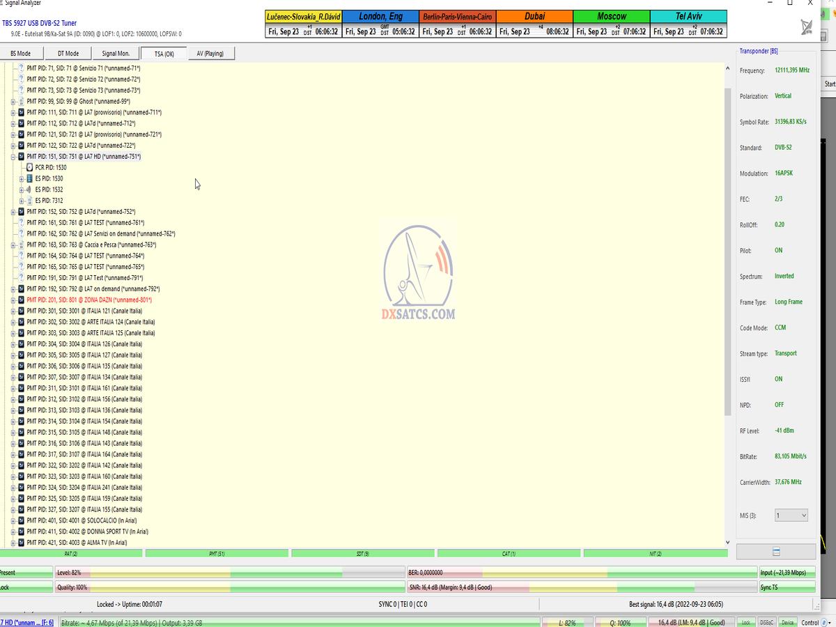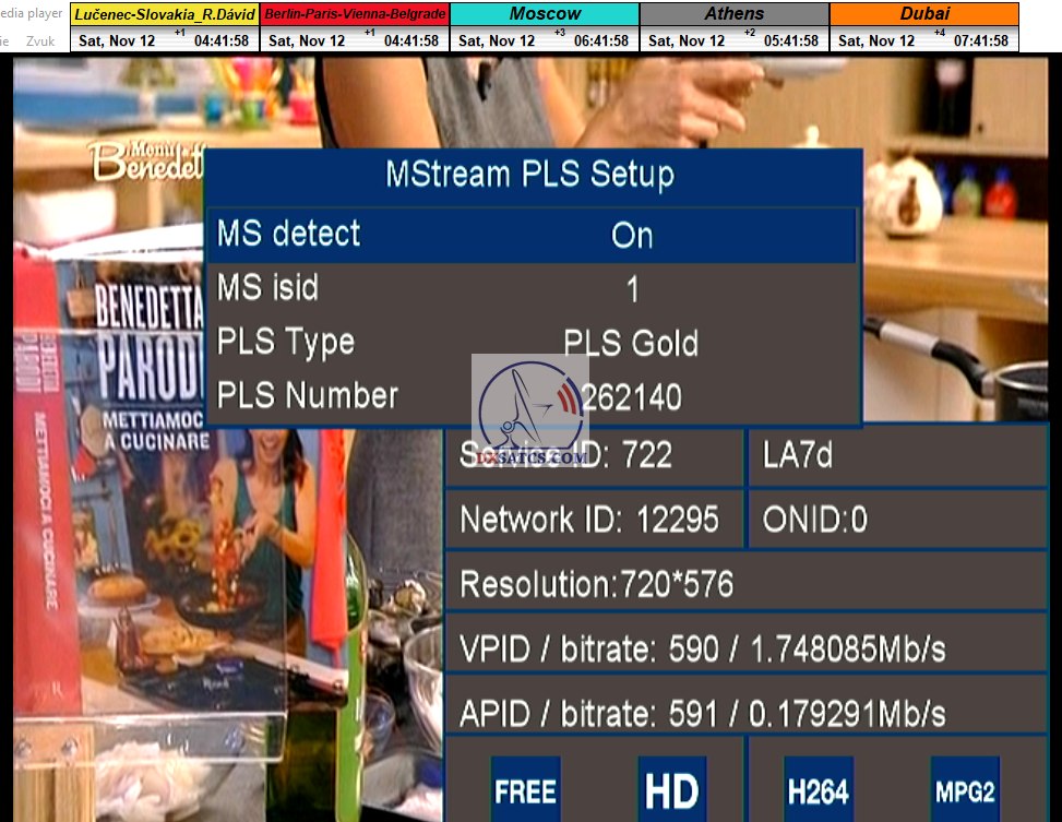 > PARAMETRE PRENOSU : DVB-S2 _ 16APSK _ SR=41 950 _ FEC=2/3 _ PLS Gold 262140 _ Multistream 12-13-17-23 <