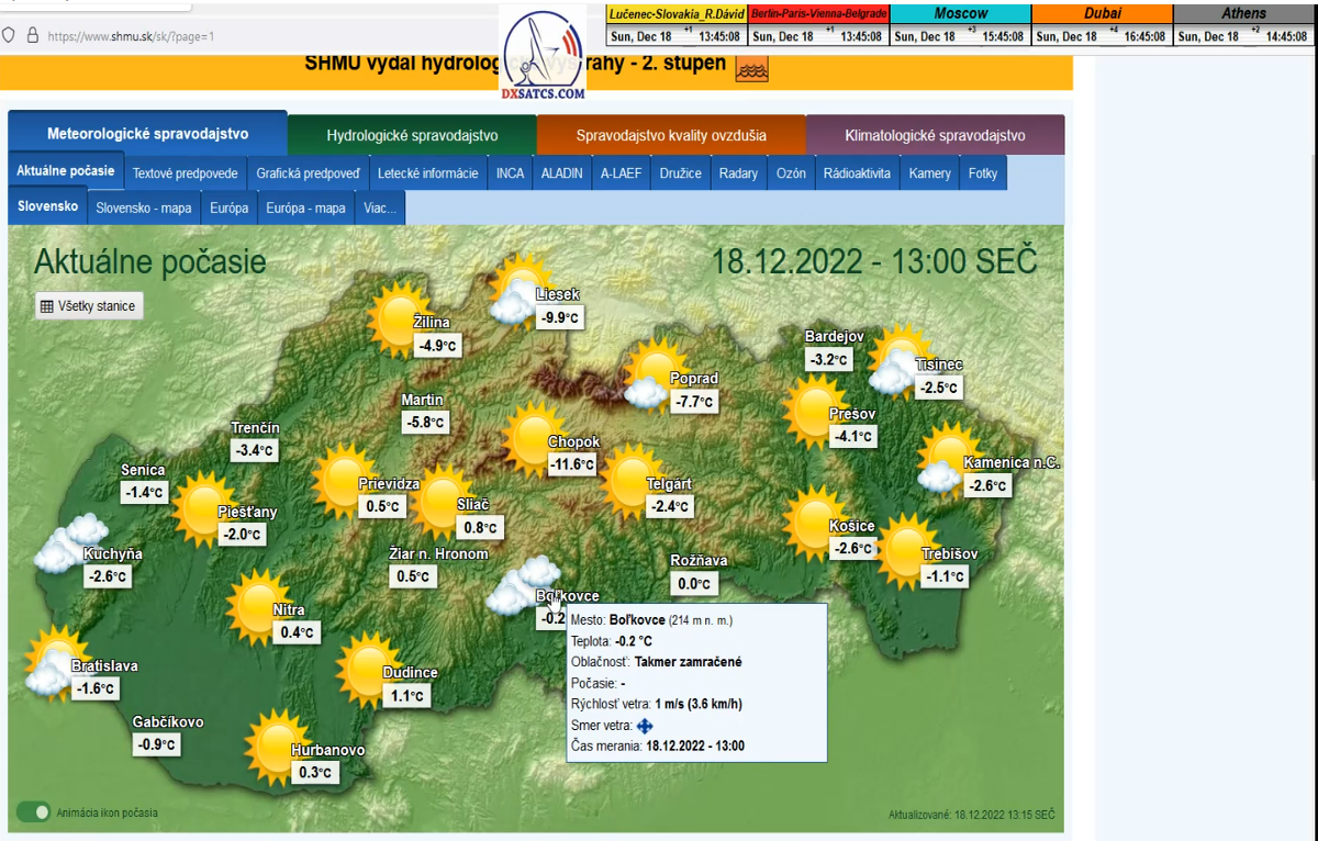 -A- : Začiatok signálneho monitoringu dňa 18.12.2022 o 13:40 SEČ a aktuálna poveternostná situácia