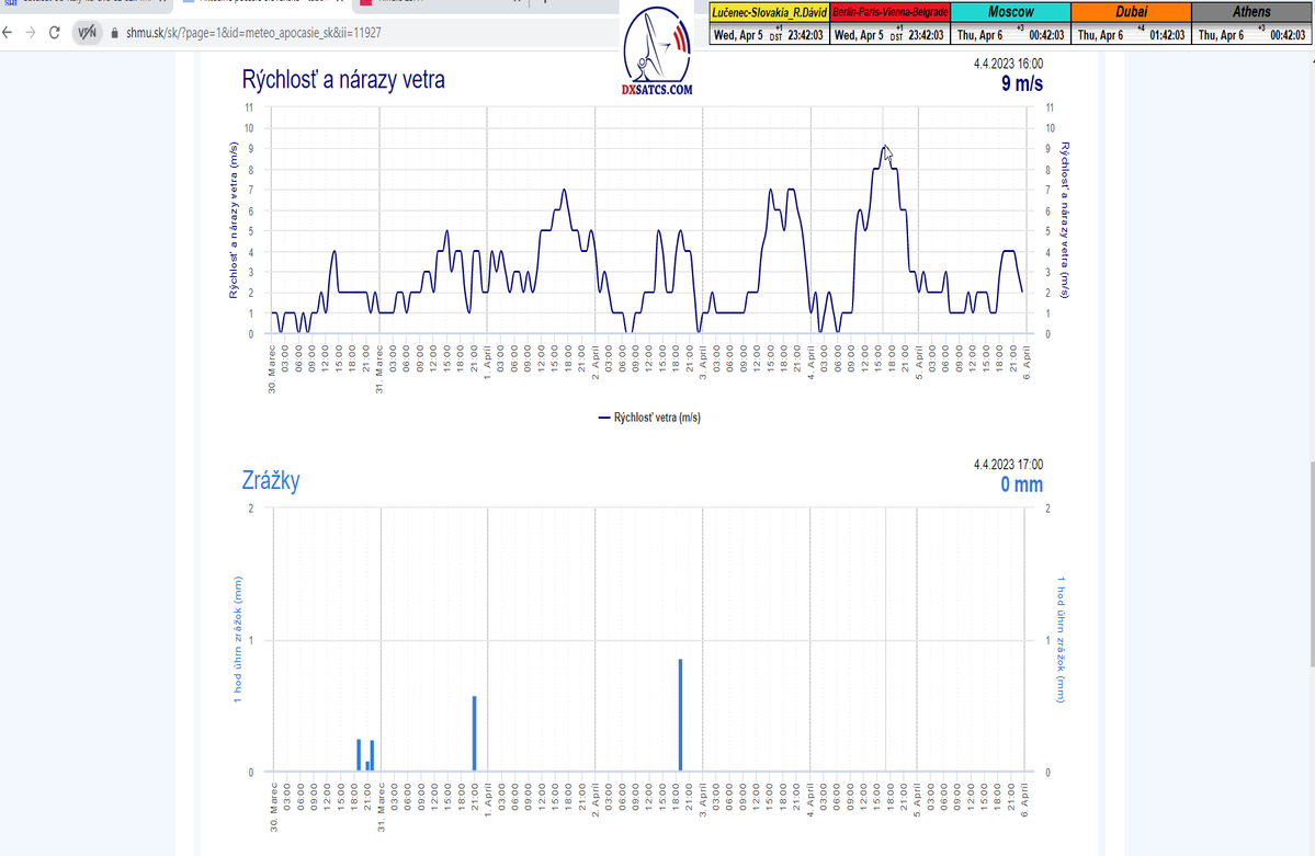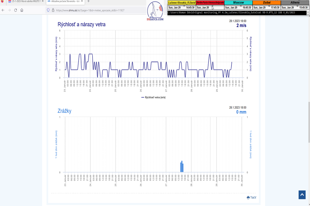 -štart signálneho monitoringu : SNR=14,8 dB - - poveternostné podmienky pri štarte : dážď - -aktuálne údaje : úhrn zrážok a rýchlosť vetra-