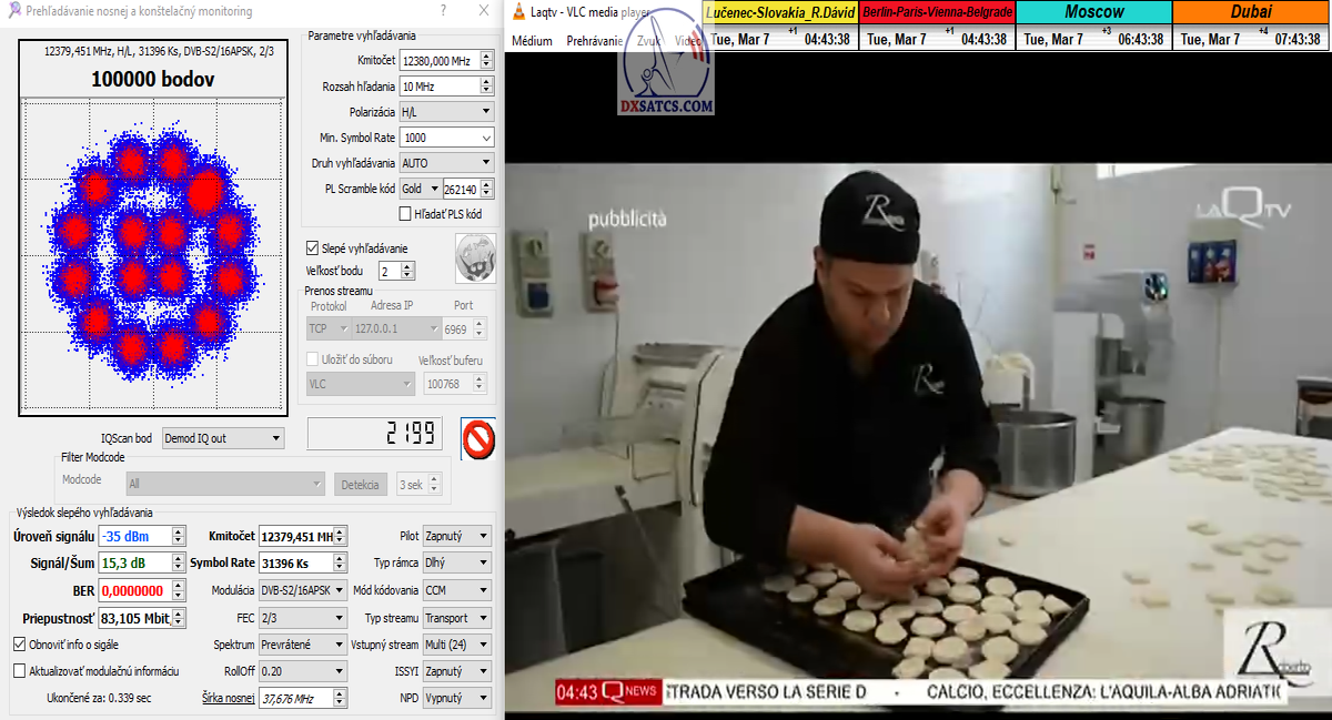 s verifikáciou stredoeurópskeho času v TV vysielaní,napríklad v SKY TG24,pretože to je dôkazom o reálnosti signálnej kvality,ktorú som v meste Lučenec dosiahol.Ak by niekto spochybňoval hladiny SNR zo samotného SW EBSpro,potom na dôkaz vyvrátenia týchto pochybností ponúkam ďalšie 3 signálne zdroje ako napríklad analyzátor Metek HD,4K receiver Octagon,SW CrazyScan a pochybnosti všetkého druhu sú razom blízke alebo rovné NULE. Ospravedlňujem sa za môj slovník určený pre publikum s určitou mierou "mentálnej invalidity alebo mentálneho postihnutia",ale občas je vhodné zopakovať si aj elementárnu abecedu,pretože nie každý čitateľ pochádza z odbornej alebo vedeckej sféry a moje vysvetlenie smerujem aj do radov takzvaných