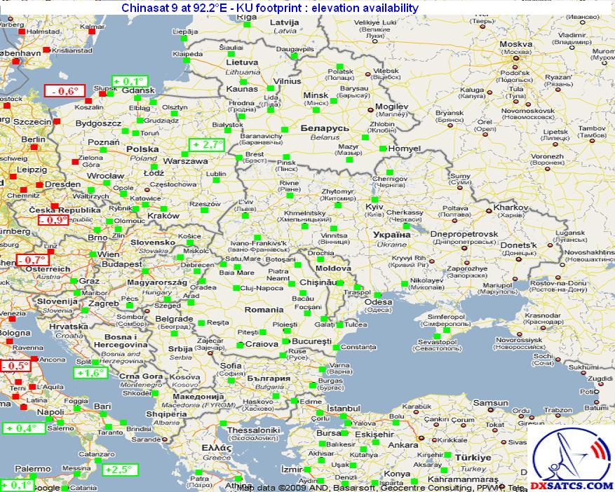 Chinasat 9 at 92.2°E - Asian footprint : measurements taken in the town of Lučenec / central Slovakia
