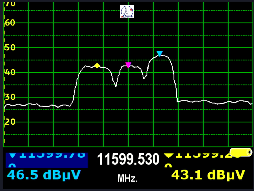 SPAN=2 MHz : 11 599,250>11 599,530>11 599,760 MHz