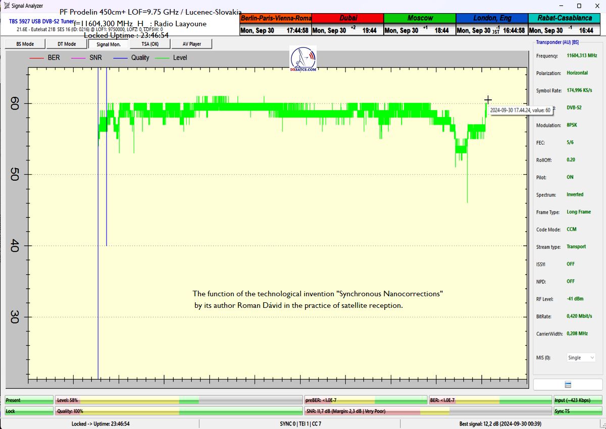 The function of the technological invention "Synchronous Nanocorrections" by its author Roman Dávid in the practice of satellite reception. : example/demonstration