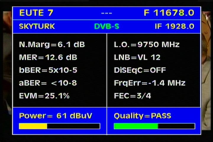 EIRP flow around 51 dBW ,with a fair gain margin for detection of the carrier about MER=9 dB .Ch BER level oscillates