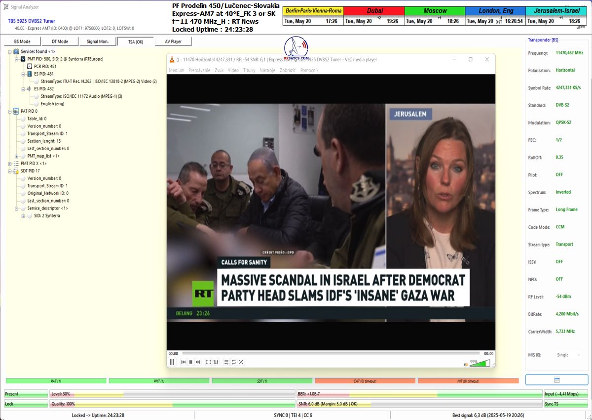 >RT News Russia : 11 470,5 MHz_H _ Lučenec / central Slovakia _ SNR=6,0 dB_Margin=5,0 dB <
