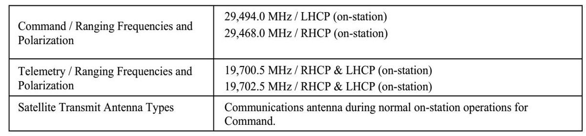 2x TT&C in the part of the R+LHCP spectrum : 19 700.5 MHz + 19 702.5 MHz
