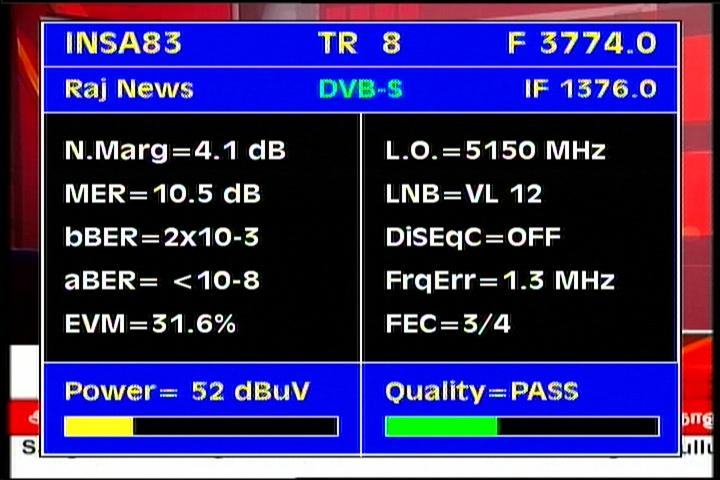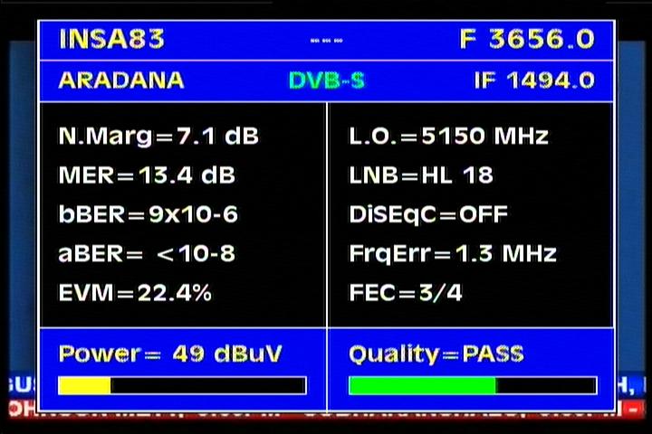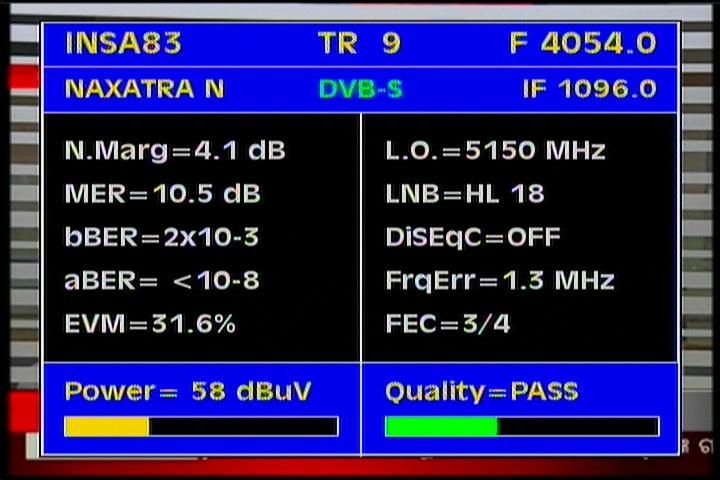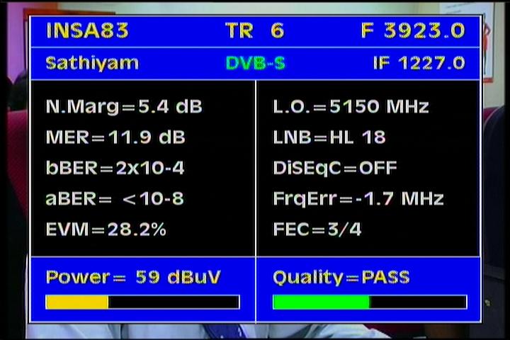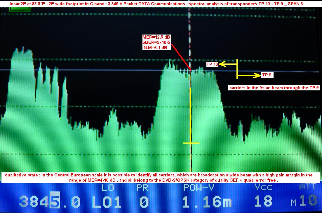 Insat 2E at 83.0°E-wide beam : 3 845 Packet TATA Communications-qualitative peak MER=12.5 dB