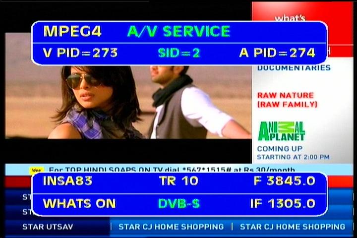 Insat 4A at 83.0°E - 4A footprint : 3 958 H MPEG-4 Pragya network India