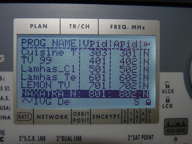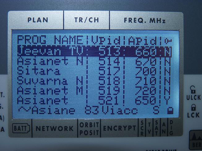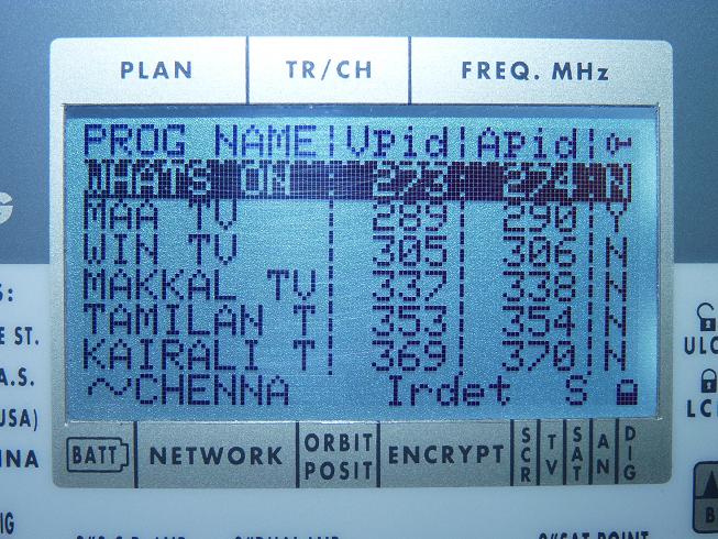 TP 10:3 845 V Packet TATA Communic.    TP 3/3 805 H : Packet Essel Shyam               TP 4/3 559 V : Sadhna TV