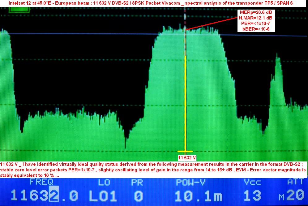 Intelsat 12 at 45.0e-european beam-11 632 V Packet Vivacom-spectral analysis-n