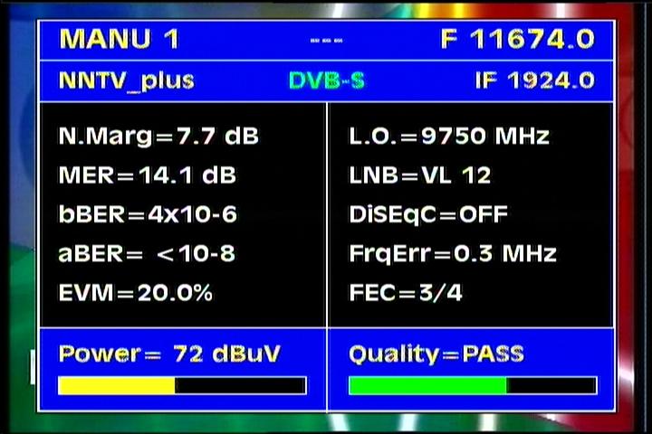 following measurement results in the carrier in the format DVB-S2 : stable zero level error packets PER=1x10-7 ,